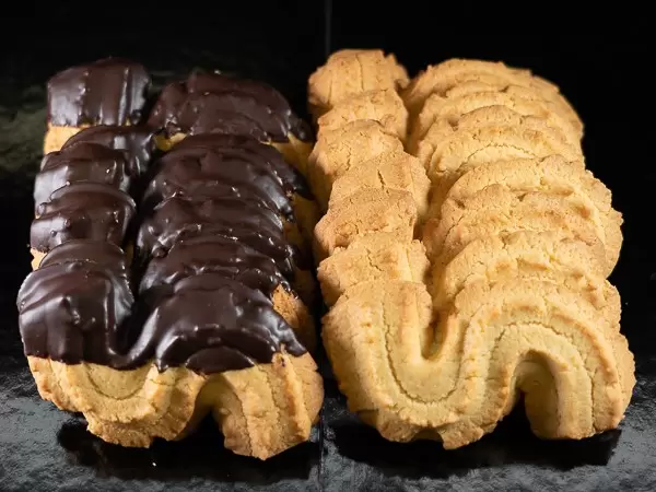 Fragranti biscotti di pasta frolla a forma di "S" glassati al cioccolato e non.