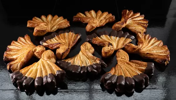 Fragrante ventaglio di pasta sfoglia, nella versione liscia e glassata al cioccolato.